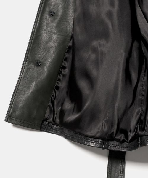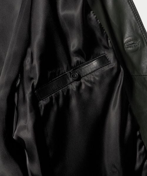 襟や袖口裏に使用されるレザーのカラーを品のあるグリーンカラーに変更。