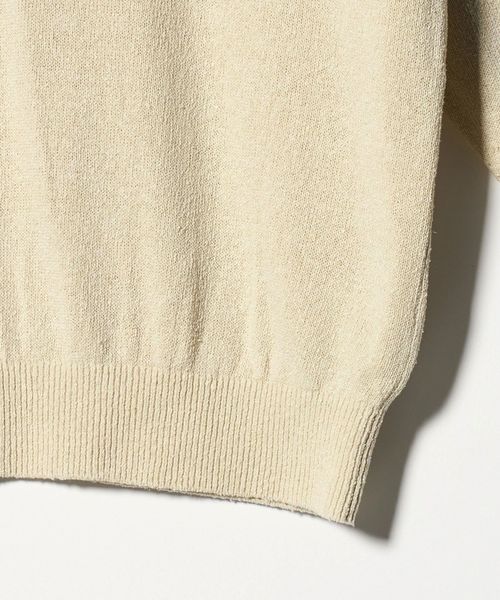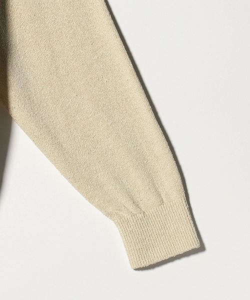 ソフトな風合いとネップ感が特徴のシルク紬糸に追撚をかけ、ドライタッチに仕上げた糸を度詰めで編み立てています。