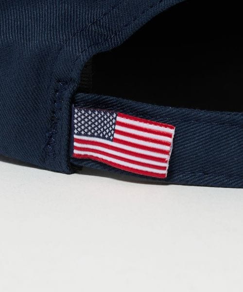 ゴールドカラーで施された大きめサイズのGF(ゴールデン フリース)ロゴ刺繍と背面にあしらわれた星条旗のピスネームがポイント。