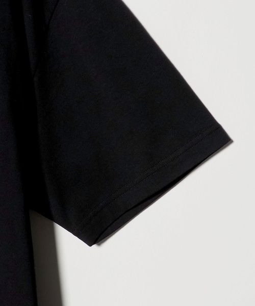 胸元のロゴプリントをアクセントにした、シンプルなTシャツ。