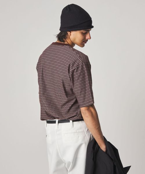 スティーブンアランらしい、オリジナルパターンのボーダー柄を採用したクルーネックTシャツ。