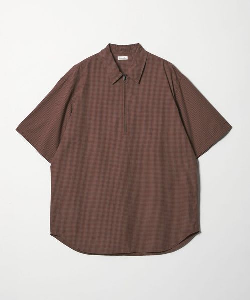 <Steven Alan> オーガニックコットン チェック ジップ プルオーバー ショートスリーブ シャツ