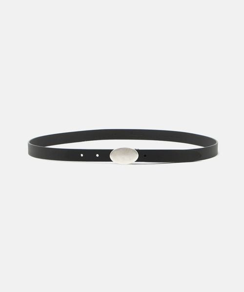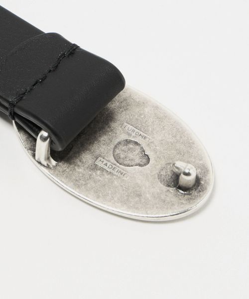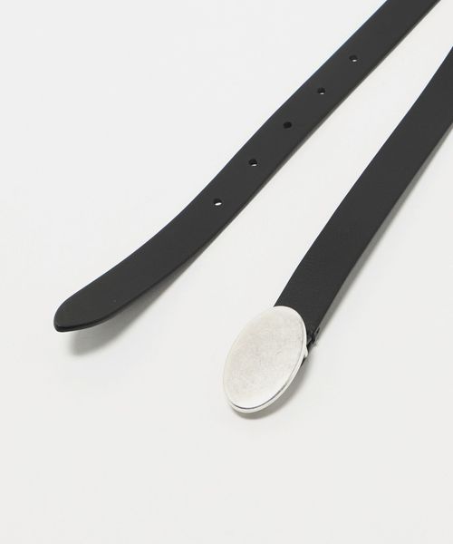 ネイティブアメリカンジュエリーにインスパイアを受けた、洗練されたオーバル型バックルとレザーを組み合わせたナローベルト。
