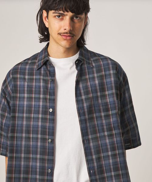 <Steven Alan> マドラスチェック レギュラーカラー ショートスリーブ シャツ BOX