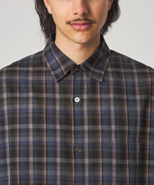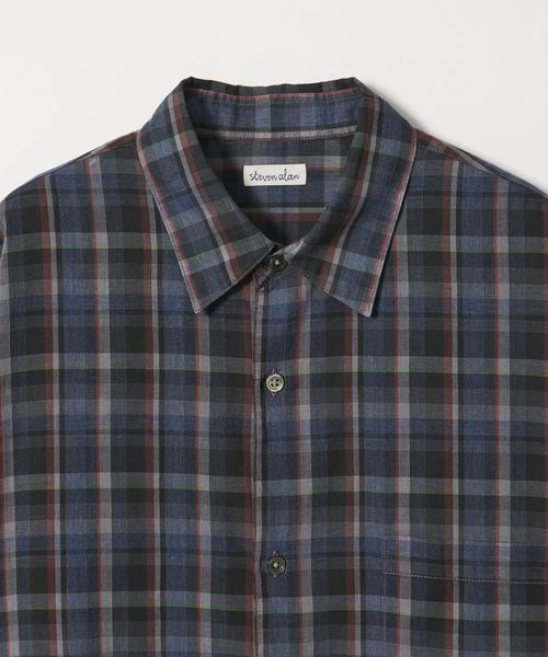 <Steven Alan> マドラスチェック レギュラーカラー ショートスリーブ シャツ BOX