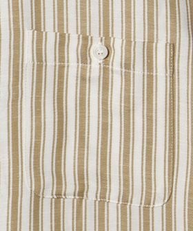ファブリックには、麻綿を混紡したベージュストライプの生地を使用。