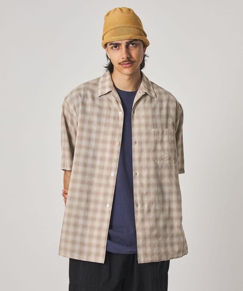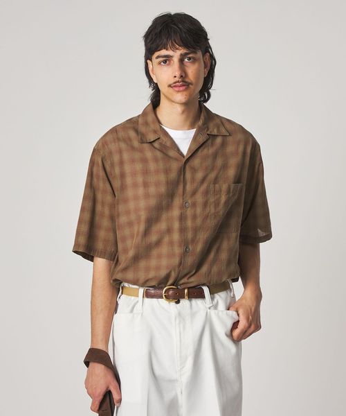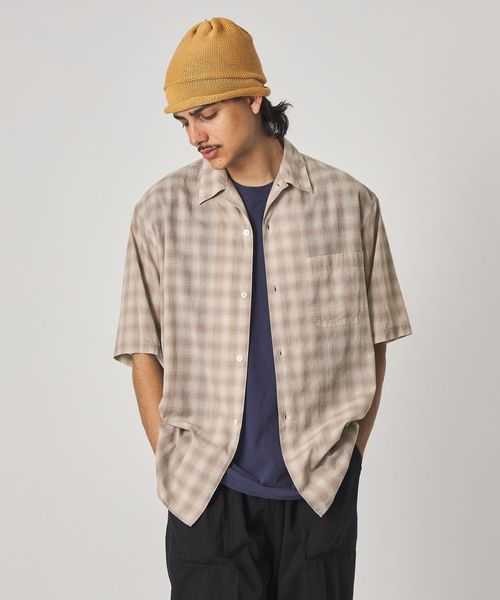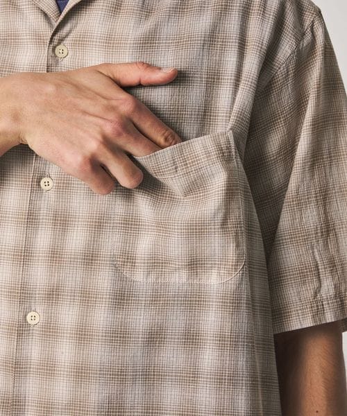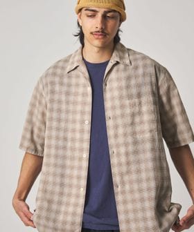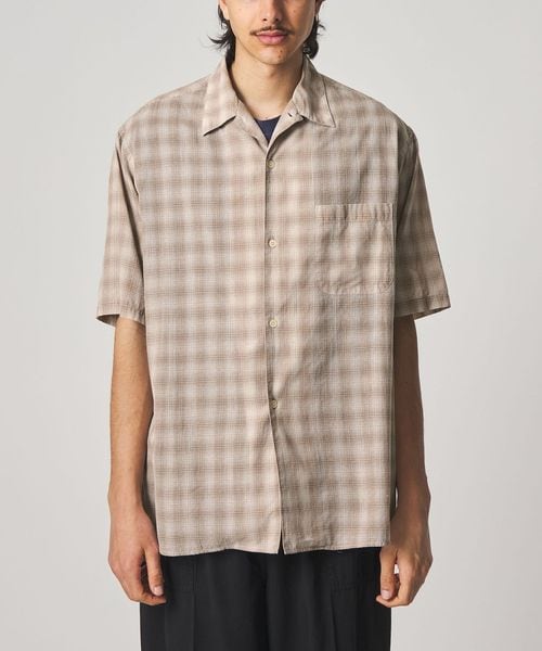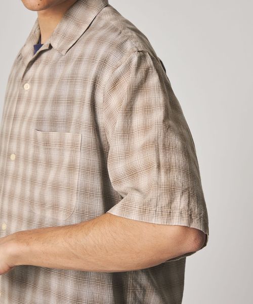 <Steven Alan> コットン/シルク オンブレーチェック オープンカラー シャツ BOX