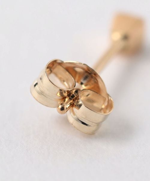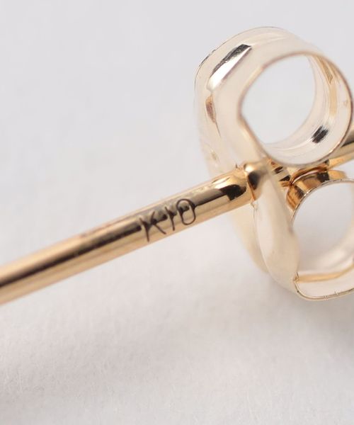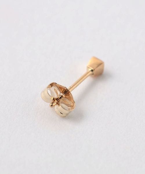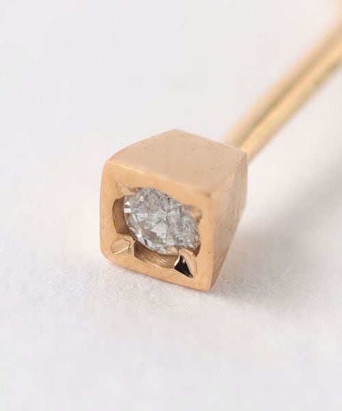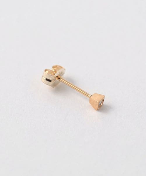 K10を使用したスクエア型の土台に、ダイヤモンドを添えたシングルピアス。