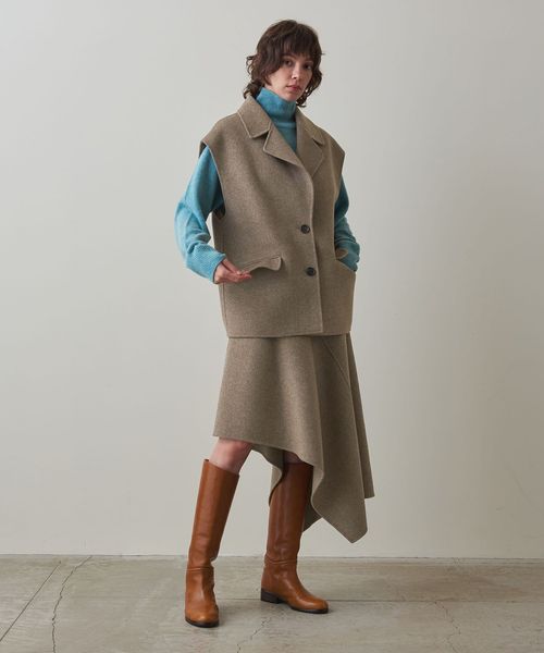 個性的なディテールながら、ウール100%のあたたかみのある風合いがシックな印象をプラスします。