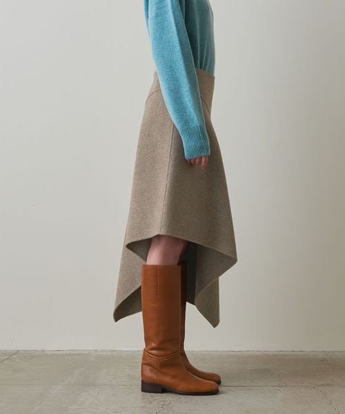 すっきりと足が見える長さで、ブーツはもちろんタイツとのコーディネートも楽しめます。