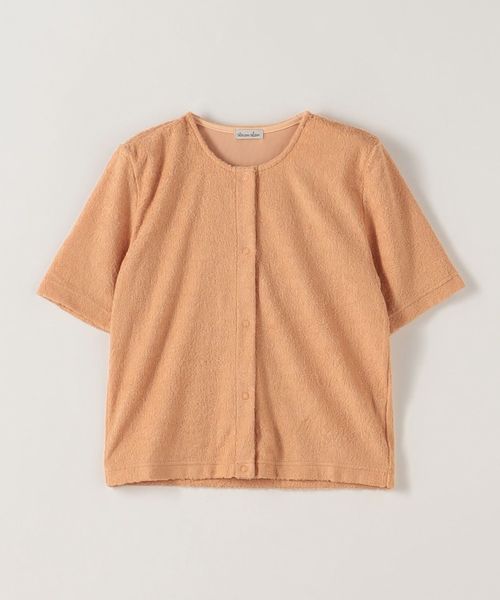 まるでぬいぐるみのようなくるんとした毛並みのあるジャージー素材を使用した、カーディガン。