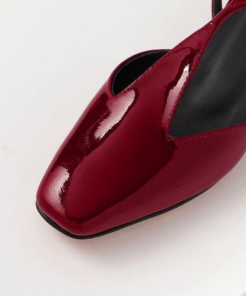 シャープなトゥデザインと、艶やかなカラーが目をひくシューズ。