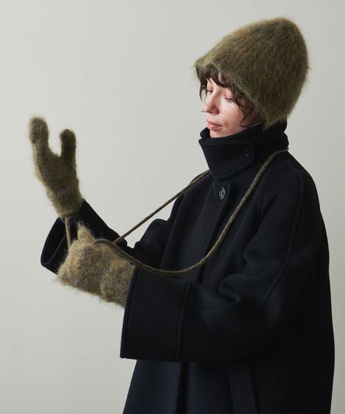 ふわふわとしたやわらかな風合いの素材を使用したミトン。