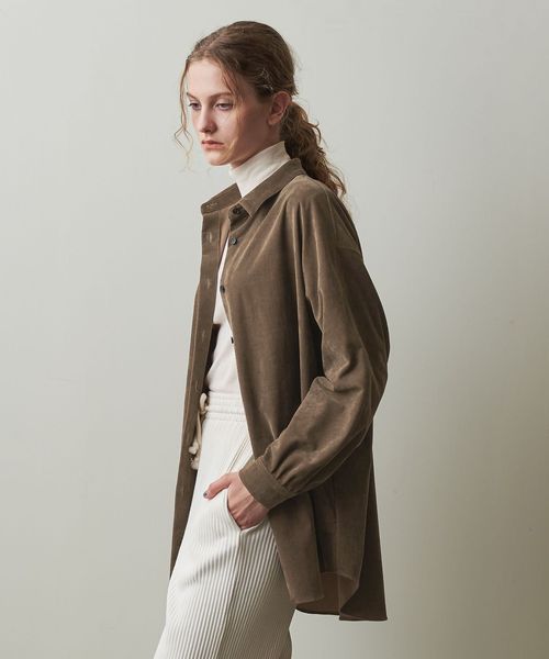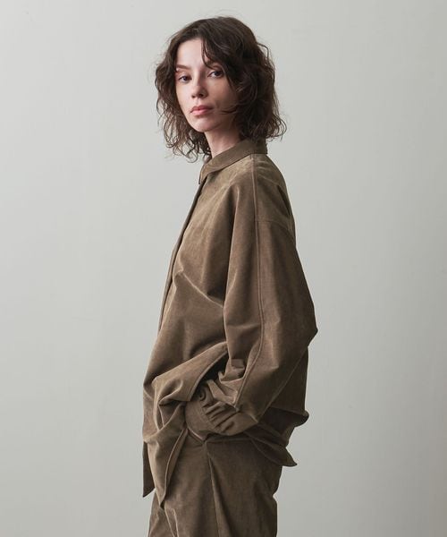 落ち感と軽さが特徴の微起毛感のある素材を使用した、ビックシャツ。