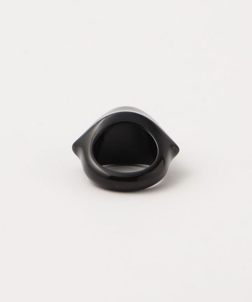 個性的なフォルムが目をひくオニキスのリング。