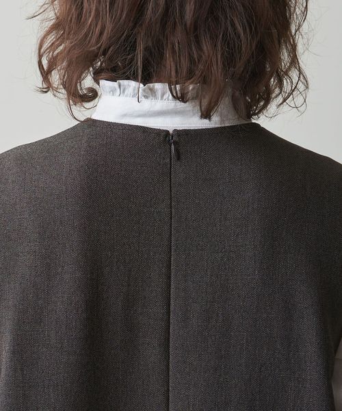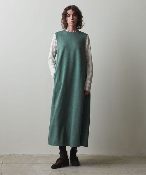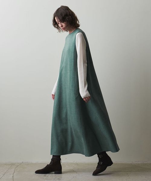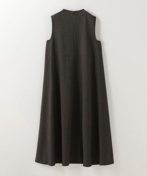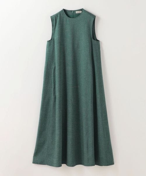 ドライタッチのツイル素材を使用した、ミニマルなデザインのノースリーブワンピース。
