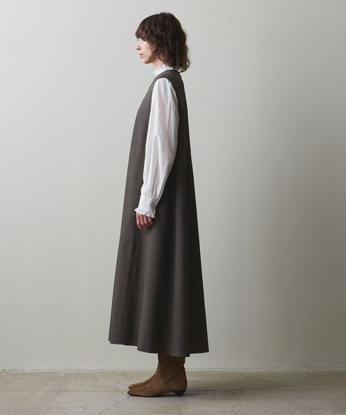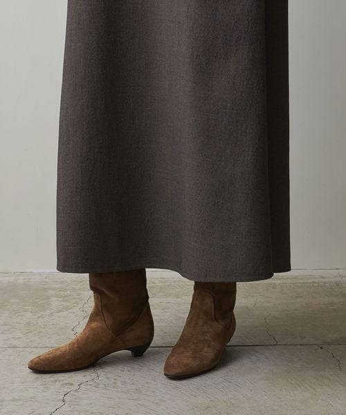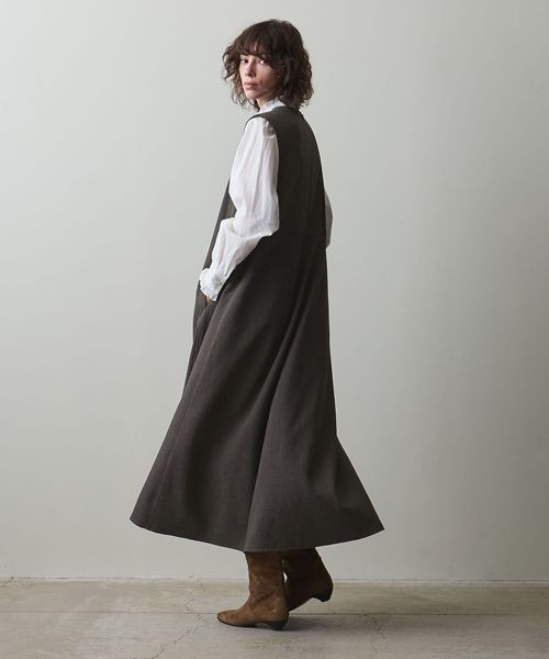 裾に向かってたっぷりと分量感を持たせたフレアシルエットです。