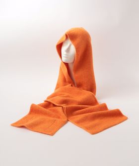 フード付きのデザインが個性を放つマフラー。