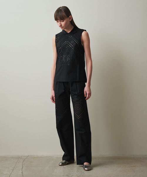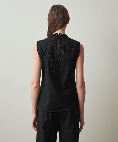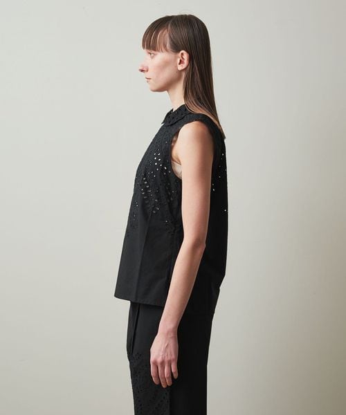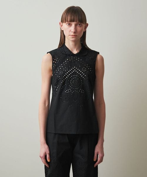 ハートデザインの繊細なアイレットレースが目をひく、<RACHEL COMEY>のノースリブブラウス。