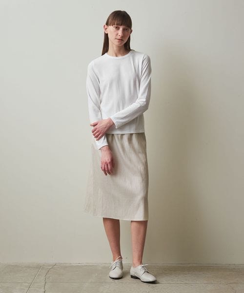 風合いを際立たせるミニマルなデザインは一枚着はもちろんインナー使いもしやすく、汎用性の高い一着です。