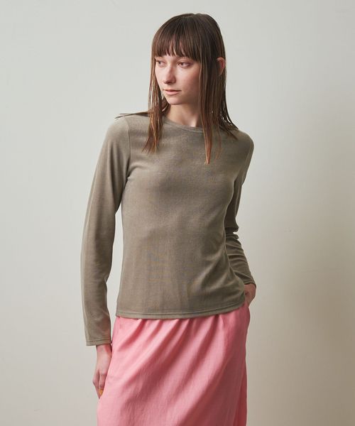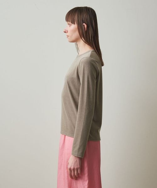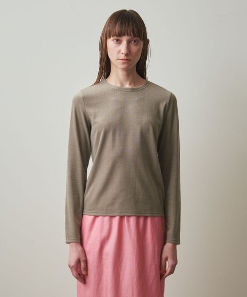 表情感のあるパイル素材を使用したシンプルなロングスリーブTシャツ。