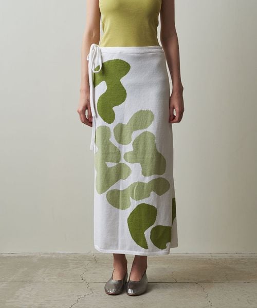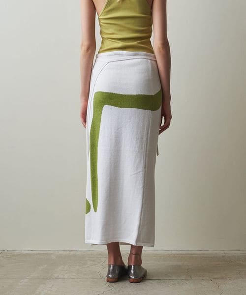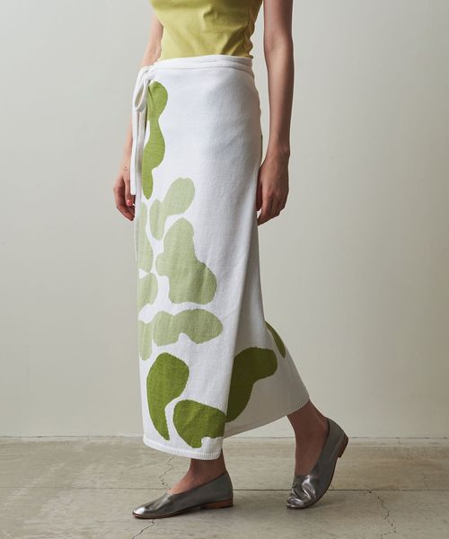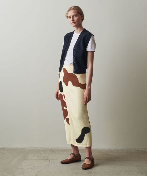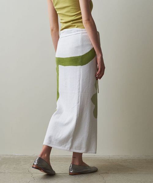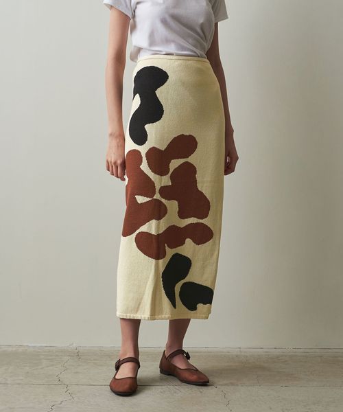 まるで絵画のような柄が目をひく、ニットスカート。