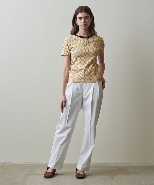 遊び心のあるプリントに、配色のリンガーデザインをアクセントにしました。