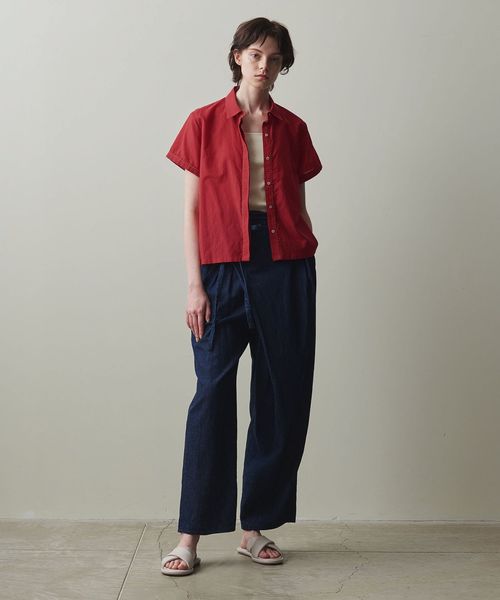 フロントボタンを上まで閉めてデニムやチノパンツ等シンプルなボトムスと合わせたり、キャミソール等の上に着て、軽めの羽織りものとしても重宝します。