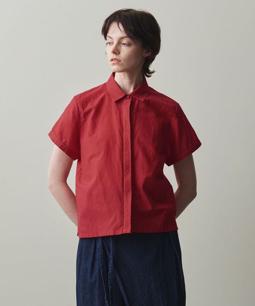 コットンシルクの繊細な素材を使用した、ハーフスリーブシャツ。