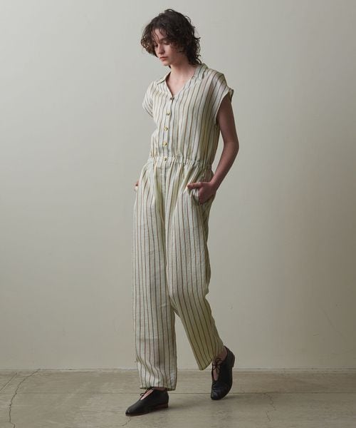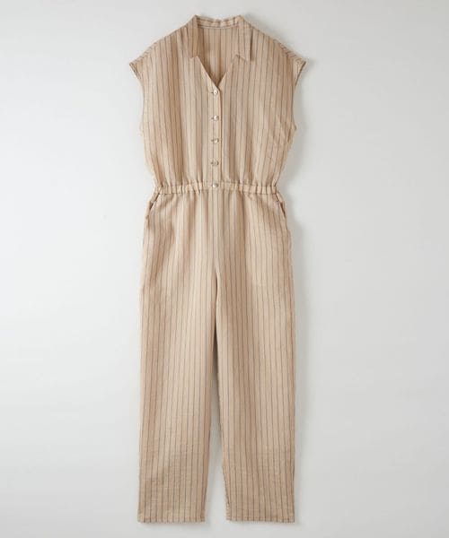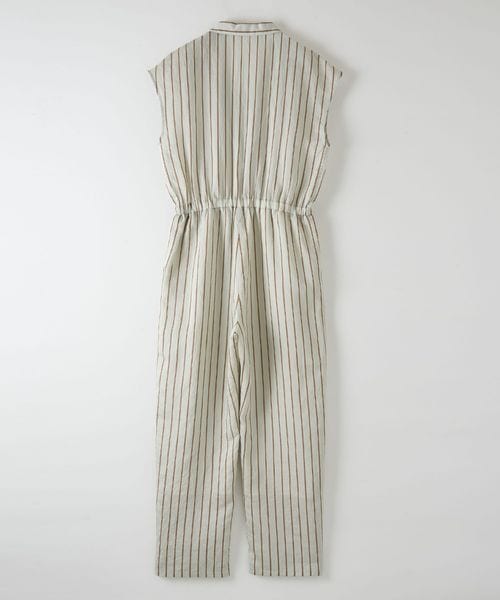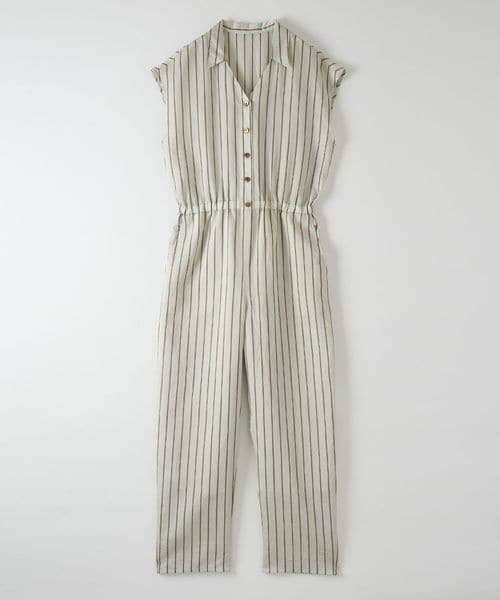 やや光沢のあるさらっとした生地と爽やかな配色のストライプ柄がシーズンムード溢れる、オールインワン。