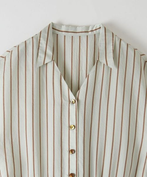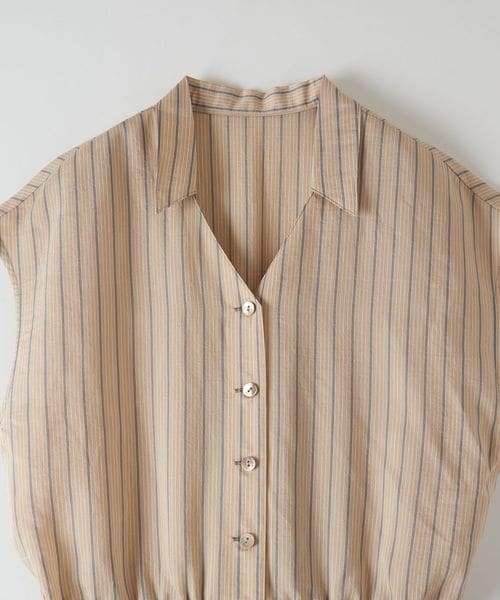 襟付きのVネックに、フレンチスリーブデザインがクラシカルな雰囲気。