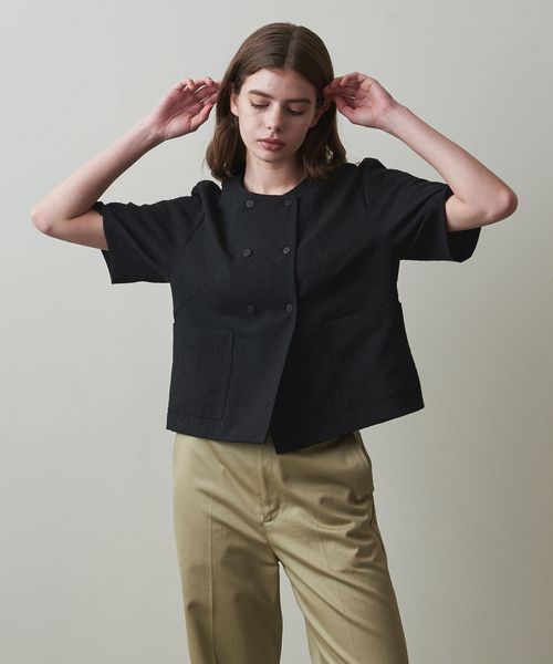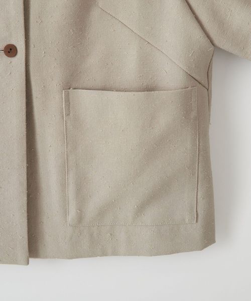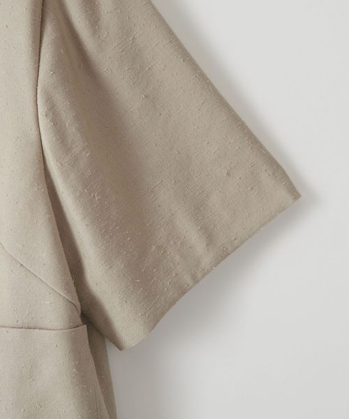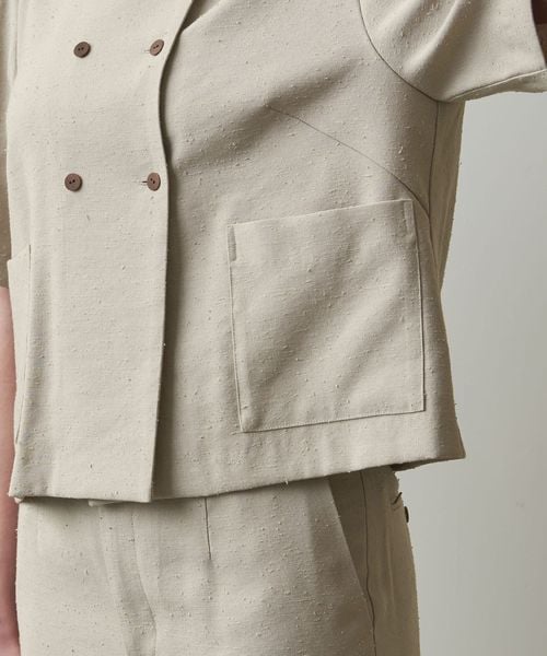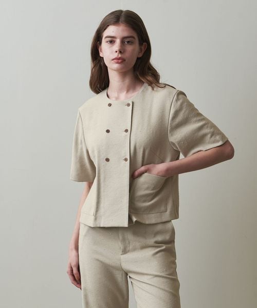 同シリーズのパンツとセットアップコーディネートはもちろん、ワンピースやウエスト履きのボトムス等との相性がよく、汎用性の高い一着です。