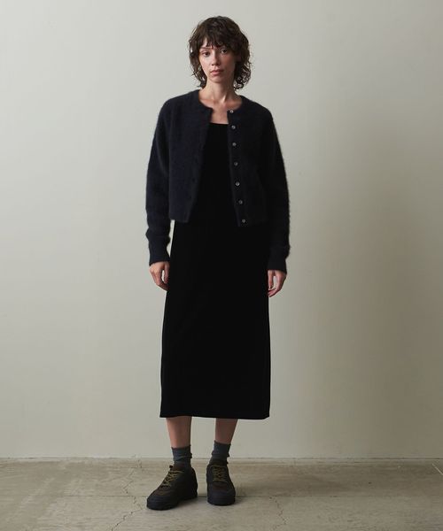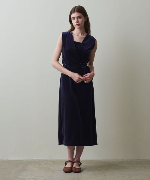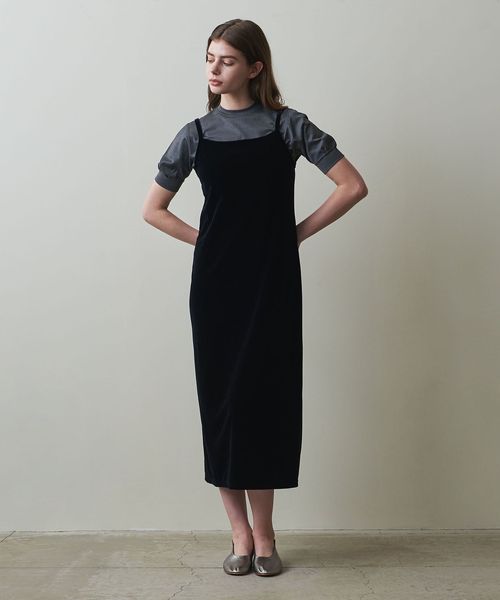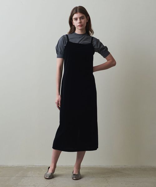 上品な光沢が特徴のベロア生地のキャミソールワンピース。