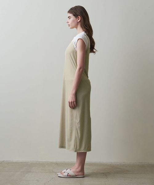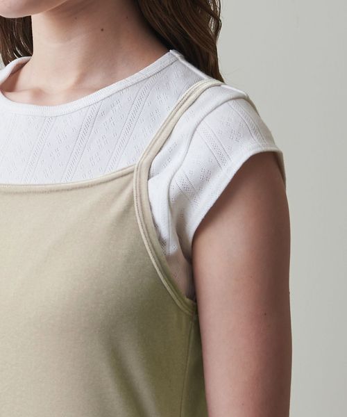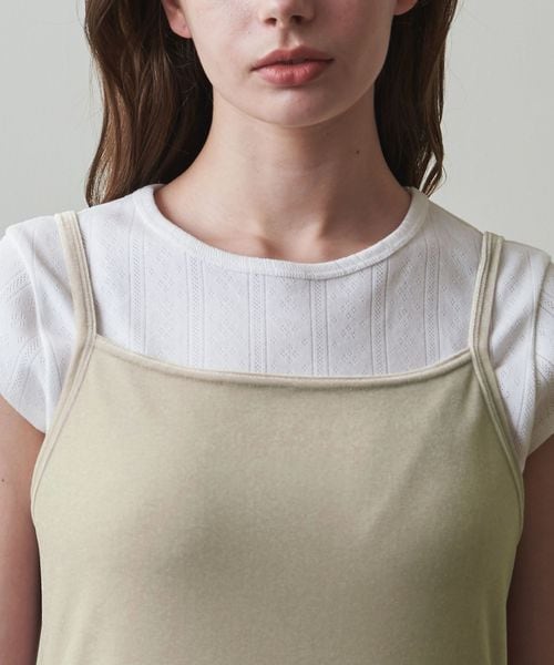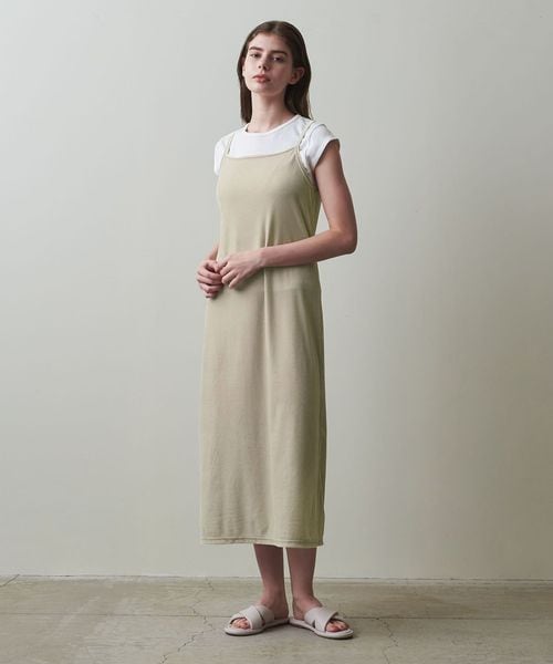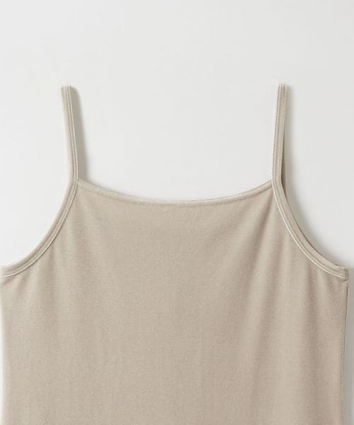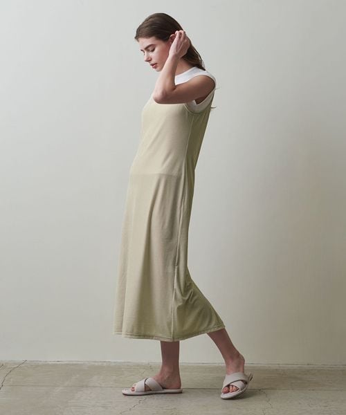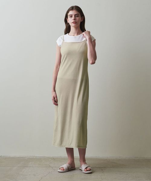 シンプルなキャミソールデザインは、一枚着はもちろん、カットソーやパンツとのレイヤードで着こなしに変化をつけられるのも魅力。