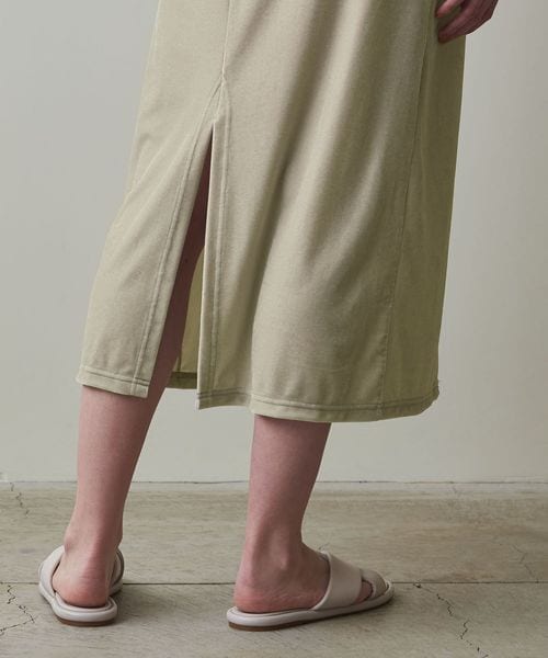 バックサイドは裾スリット入りで足さばきしやすく、抜け感をプラスします。