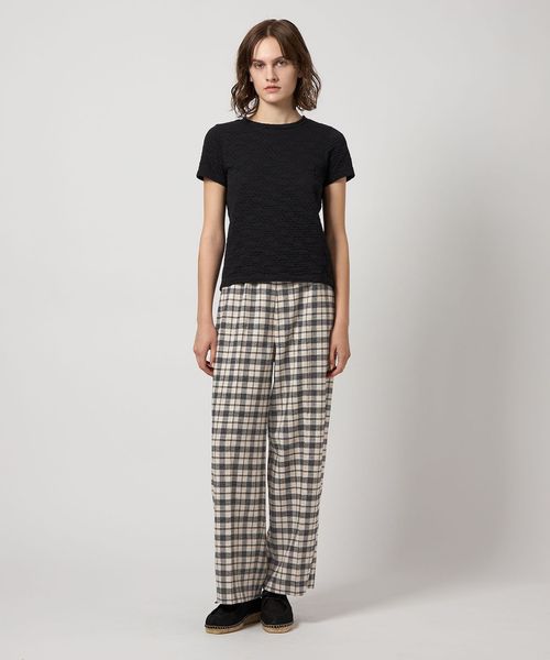 上品さのあるワイドストレートシルエットがきれい目な印象ながら、バックサイドにはゴムを入れはきやすさにも配慮。