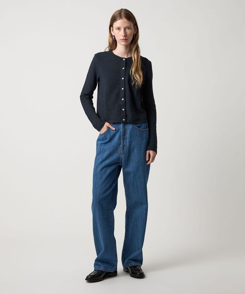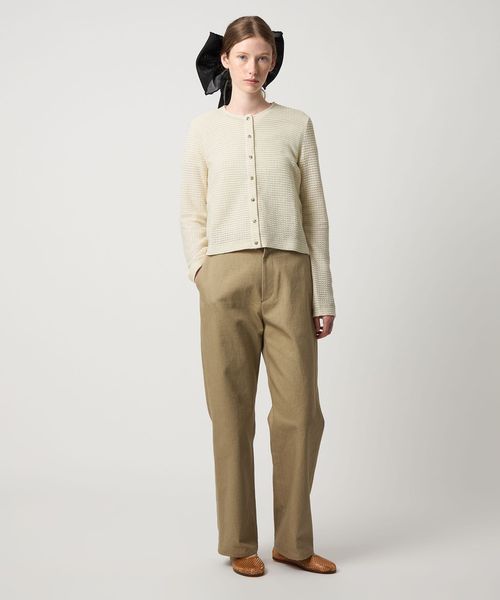 キャミソールやホルターネックの上に羽織ってカーディガンとしてはもちろん、フロントボタンを占めてトップスとしての着用もおすすめ。