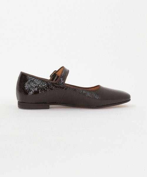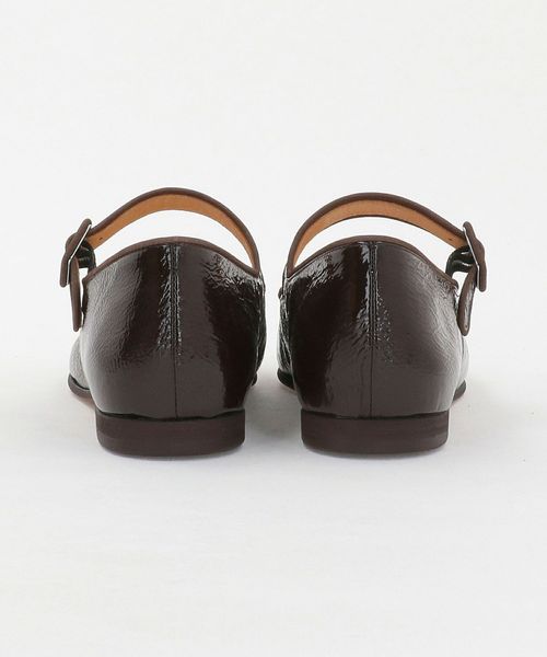 アッパーにレザーを使用した、光沢のあるストラップシューズ。