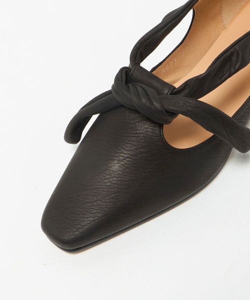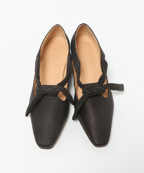 リボンディテールながら、スクエアのトゥやシャープなフォルムでモダンな雰囲気に仕上げています。