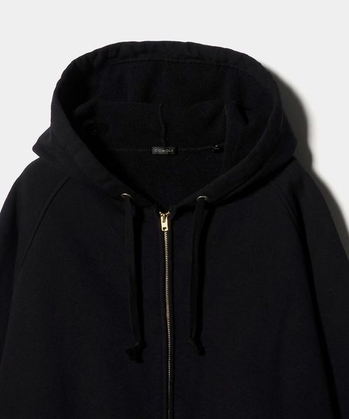 <COMOLI>定番の裏毛素材のジップパーカー。