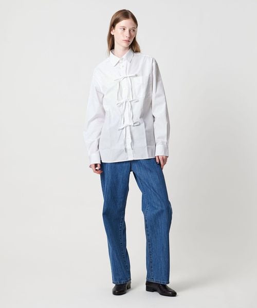 フロントに3つのリボンがデザインされた、シャツ。