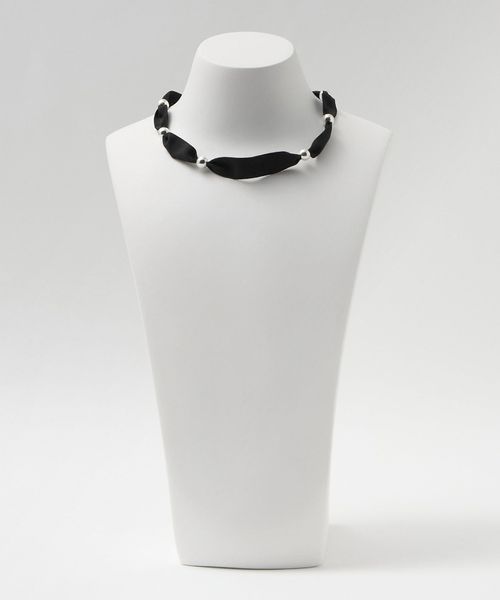 丸みを帯びた美しいフォルムと滑らかな表面感が特徴のパーツをリボンにセットしたネックレス。