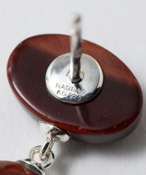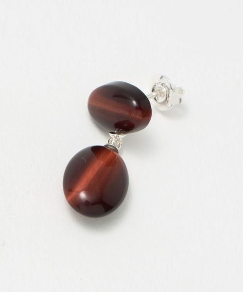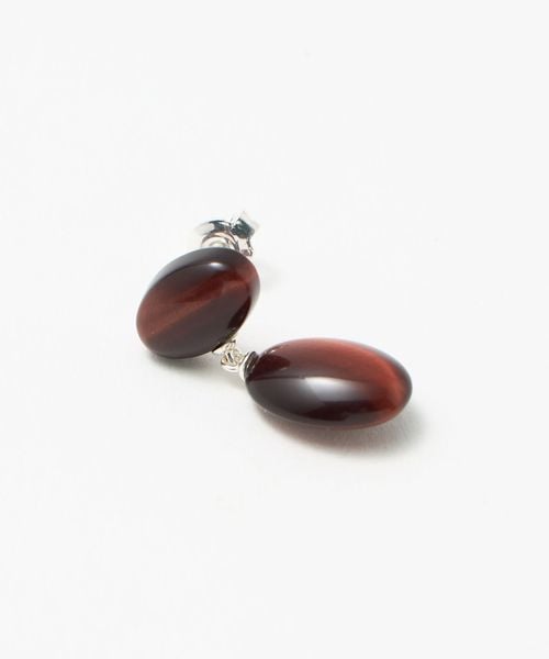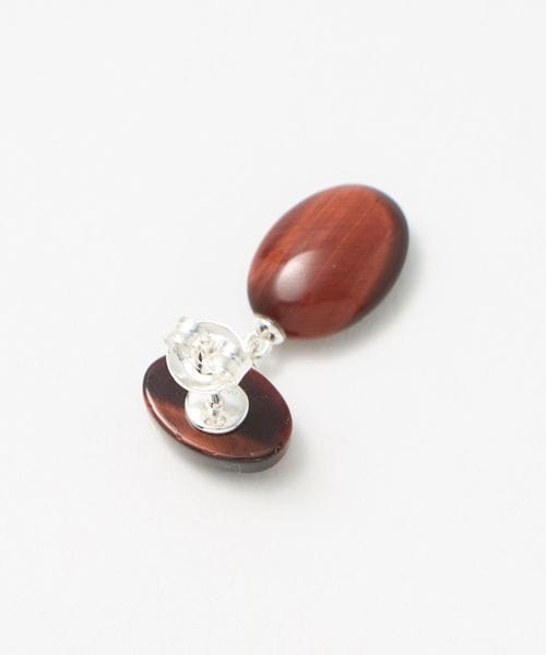 シルバーパーツにセットされた、オーバルカットのレッドタイガーアイが印象的なピアス。