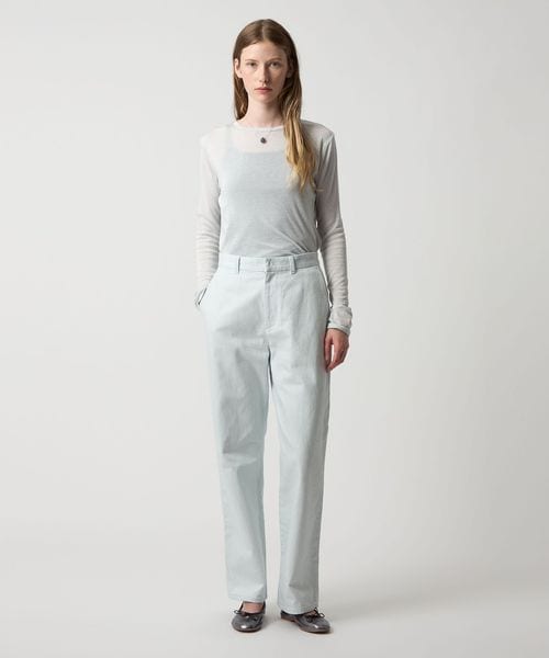 素材の風合いをいかしたシンプルなデザインで、一枚着からインナー使いまで幅広く活躍します。