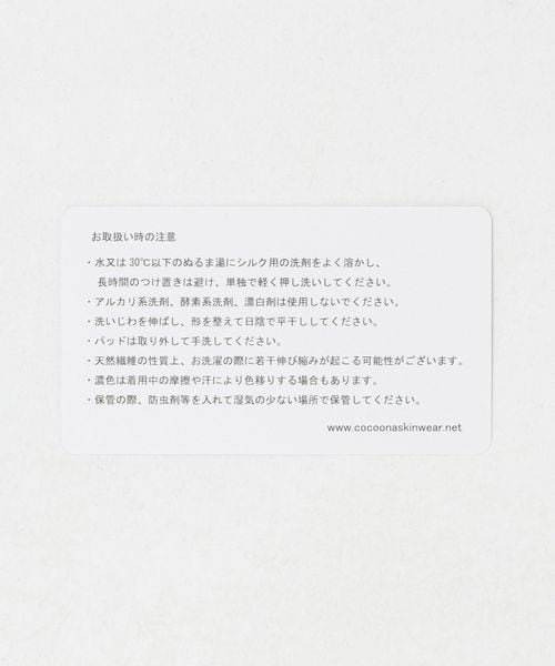 シルクのしなやかで洗練された質感、第2の肌をまとっているかのような自然な着用感、シンプルで着回しやすくアウターにひびかないデザインが特徴です。