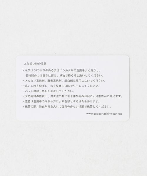 シルクのしなやかで洗練された質感、第2の肌をまとっているかのような自然な着用感、シンプルで着回しやすくアウターにひびかないデザインが特徴です。