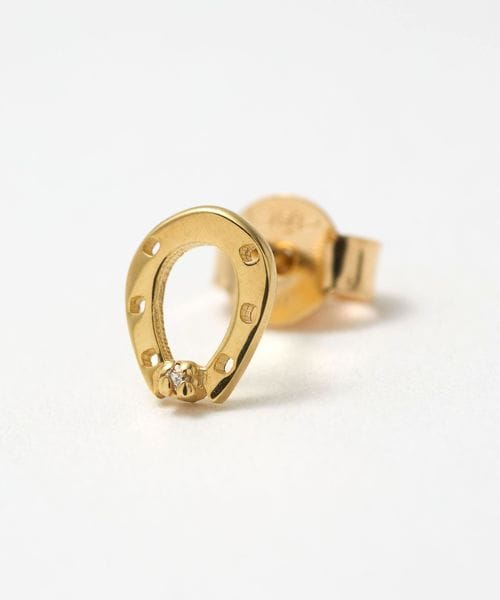 幸運のモチーフとされるホースシューを象ったシングルピアス。