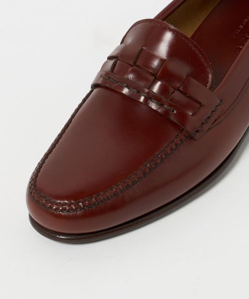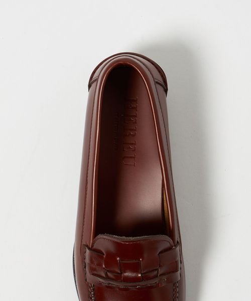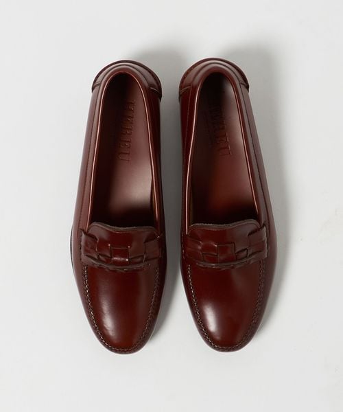 アッパーの編み込みデザインが特徴的な、ローファー。