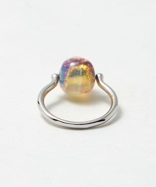 ガラスビーズをシルバーリングにセットした、リング。