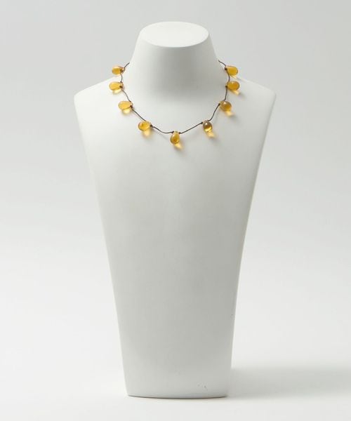 ナチュラルな雰囲気のコードに、ティアドロップ型のガラスモチーフをセットした、チョーカーネックレス。
